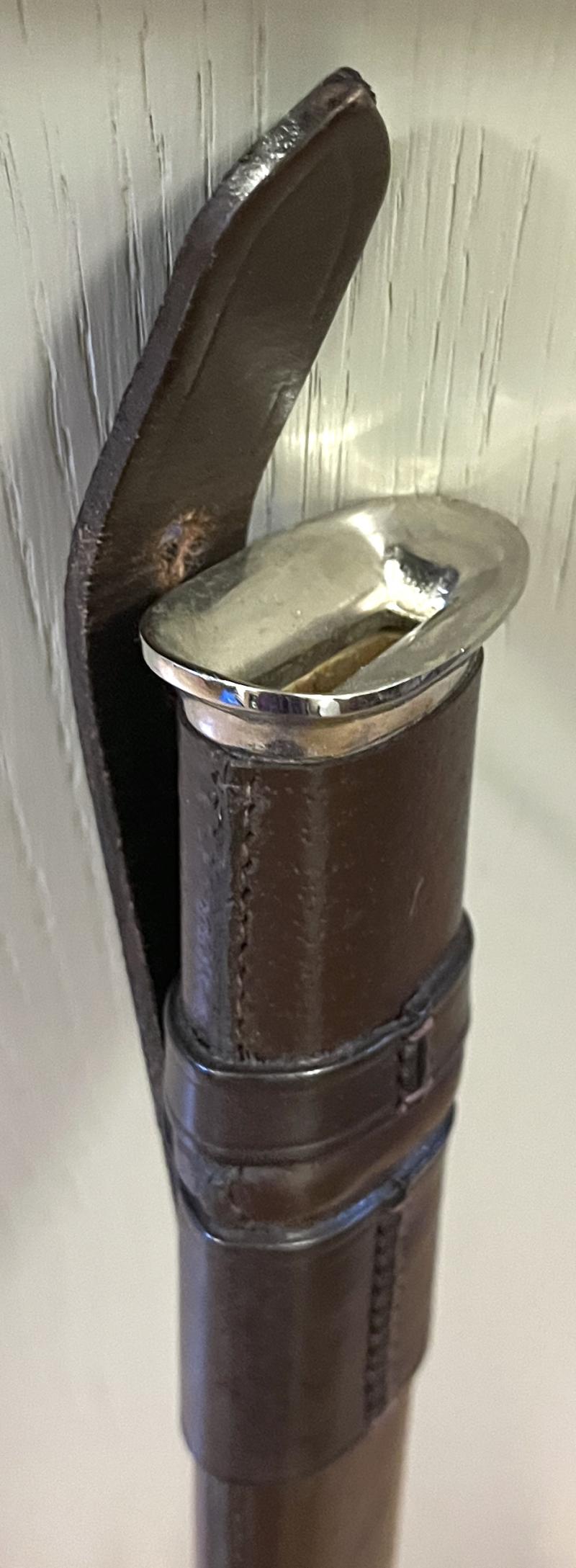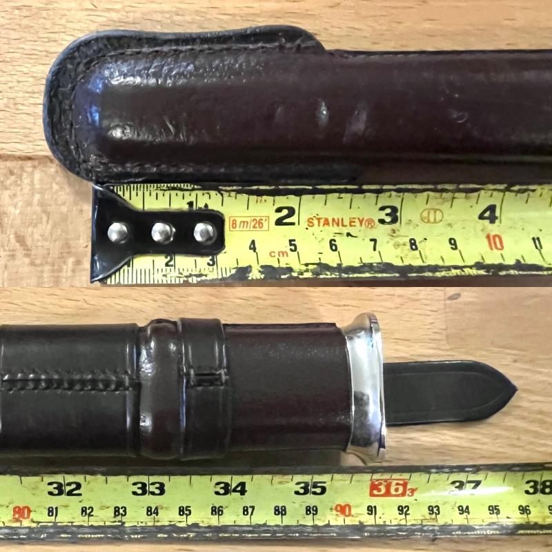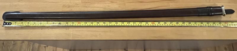 Super condition. Leather over wood. Hanging strap. Size 91 cm long approximately without fishtail. Genuine issue. V.G.C.